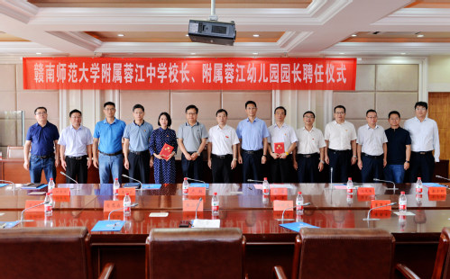 9月14日,我校附属蓉江中学校长、附属蓉江幼儿园园长聘任仪式在行政楼413会议室举行。校长卢超,赣州蓉江新区管委会主任王凌,赣州蓉江新区管委会副主任李绍武出席,我校附属蓉江学校管委会委员参加。